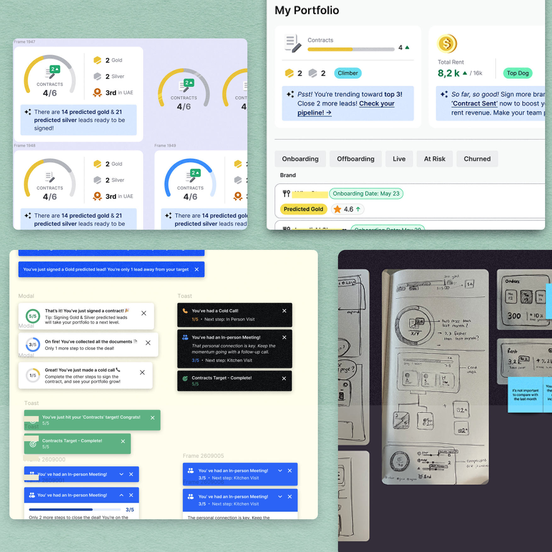 Designed a gamified metrics dashboard that visualizes user performance and progress through engaging, data-driven interactions—turning everyday workflows into motivating experiences.