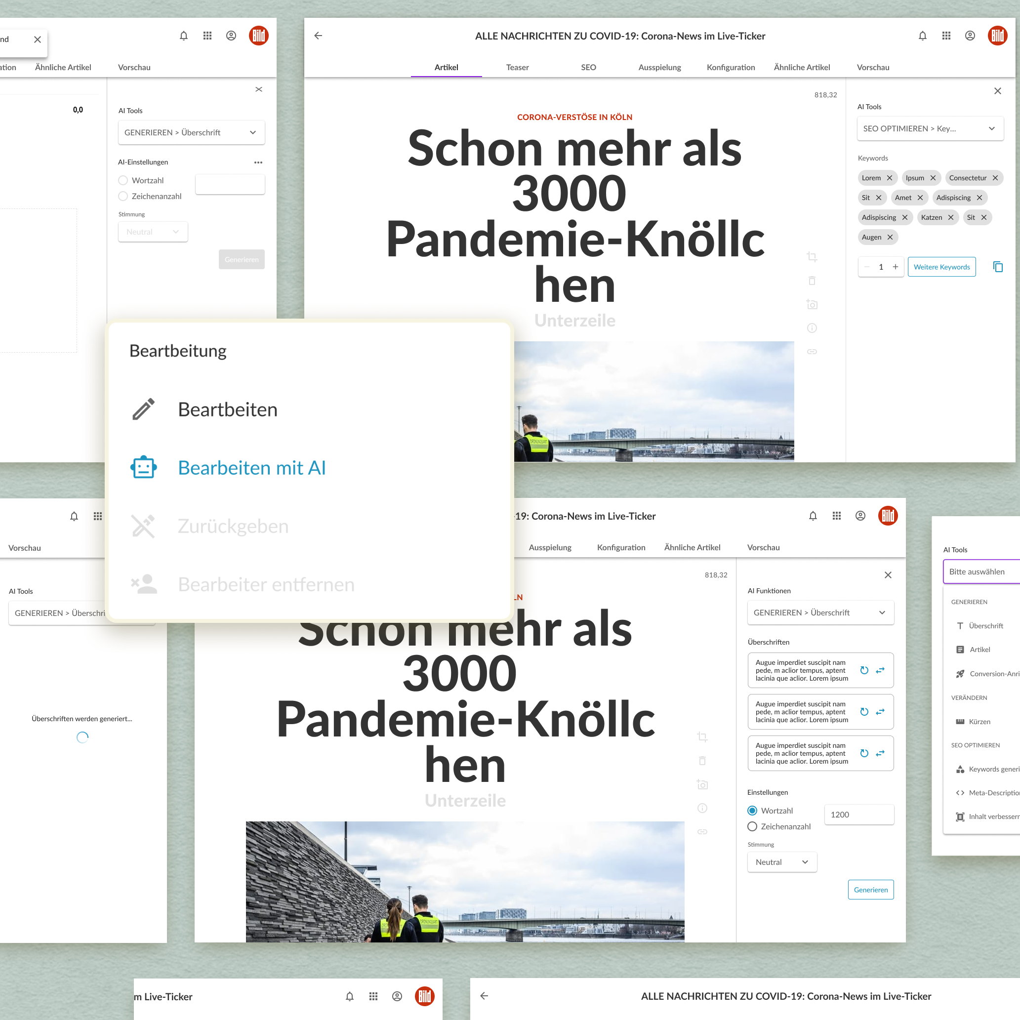I led the design of an AI writing assistant for the newsroom editor. It began as a hackathon idea and shipped to help editors rewrite, improve, & structure articles faster—my first E2E project as a working student.
