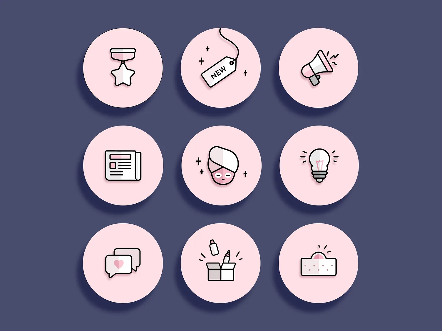 The set of icons for brand’s instagram story highlights, aligned with the branding.